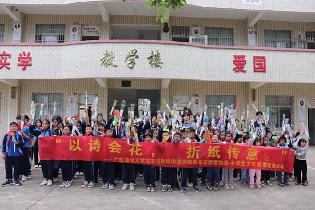 ,11月29日,bevictor伟德官网团委青年志愿者协会,组织30余名志愿者前往坡头区的“伟德官网bv1946学雷锋示范点”——黄桐希望小学,开展了“以诗会花,折纸传意”文化启蒙宣讲活动。