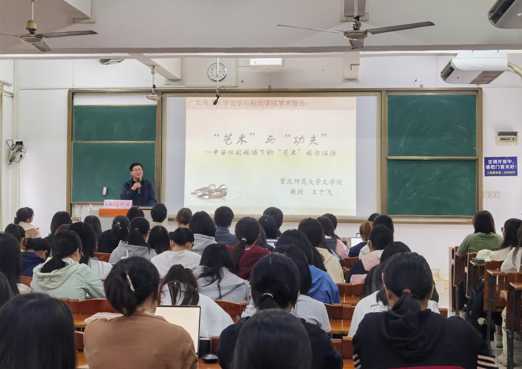 11月20日下午,重庆师范大学文公司王于飞教授应邀到公司,在明德楼B1202教室作了一场题为《“艺术”与“功夫”——中西比较视域下的“艺术”观念探源》的学术报告。报告由经理邓建教授主持,师生120余人到场聆听。