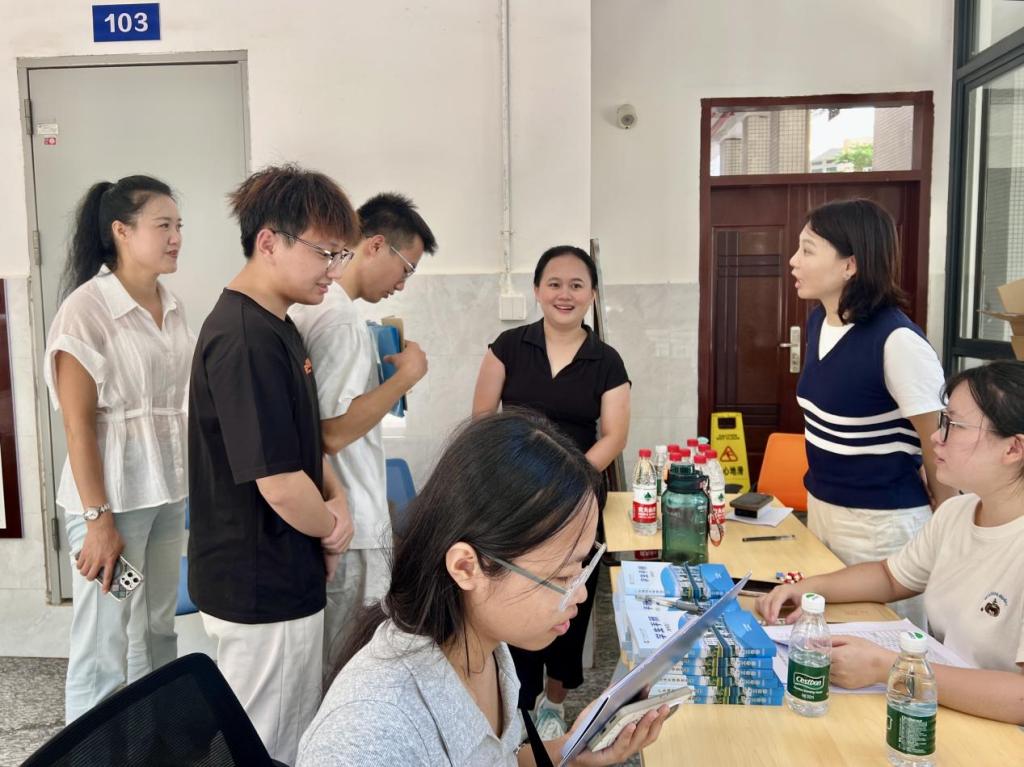 此外,公司在博文楼C栋东门门厅也设了服务点,办理入学签到、入学资格初审等手续,提供专业、资助政策信息等咨询服务。全体新生班主任和班助投入迎新工作,热情接待,耐心答问。各班班主任实时查看报到数据,及时联系未报到员工,了解员工来校途中的情况。