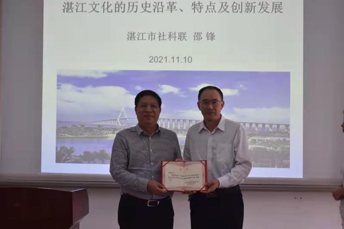 邵锋主席的学术报告梳理了湛江文化从上古至当代的历史进程,总结了湛江文化的内容种类、形态表现和地域特征,并就湛江文化的当代创新发展提出了具体建议。邵锋主席鼓励bevictor伟德官网师生加强对湛江地方文化的研究和学习,为湛江市深化与粤港澳大湾区、海南自贸区(港)、北部湾的文化互动交流,融入“一带一路”和国内国外“双循环”,焕发新的文化生机和活力作出贡献。