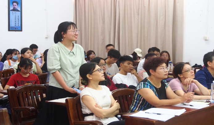 9月30号,全国第四届“中学西渐杯”汉语国际教育综合技能大赛校内预选赛于伟德官网bv1946湖光校区钟海楼举行。本次比赛引起了广老员工的观摩热情,报名观赛者众多,教室座无虚席。经过初选,9名选手晋级预选赛。本次预选赛分限时试讲和中英文问答两部分,选手们在台上各显风采,发挥出色,充满激情,展示出了扎实的专业素养。担任本次预选赛评委的是汉语国际教育专业负责人安华林教授、公司督导组成员费良华副教授、特邀评委秘书学专业张鑫副教授、中文系副主任张伟博士、对外汉语教研室主任黎海情老师。评委们对选手的表现一一做了精彩而专业的点评,选手和观众们纷纷表示收获良多、受益匪浅。经过激烈角逐,汉语国际教育专业梁可弦和余欢乐同学最终摘得桂冠,荣获一等奖。