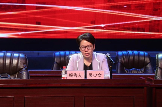 随后,教师代表、中文系副主任张伟博士发言,她结合自身的大学经历,向新生讲述了如何学好专业、与专业和解以及珍惜时间等宝贵经验。从一开始对专业的不喜欢,到主动地去了解、学习,再到最后和解与热爱,张伟博士用真挚的话语启发新生对专业应有正确的态度。她表示,“努力也许会撒谎,但是绝不会白费,你只管努力学习,时间会给你们想要的答案”。